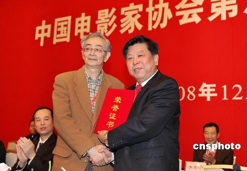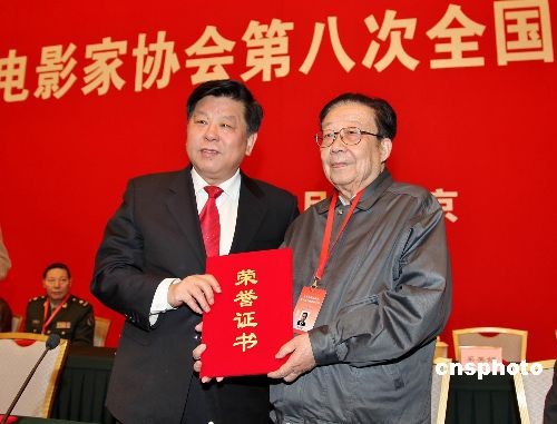中國文聯黨組書記胡振民給著名導演吳貽弓頒發(fā)榮譽證書。