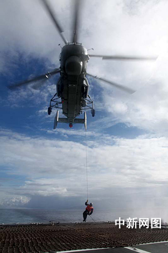 中新網(wǎng)“?凇迸12月28日電(記者 孫自法) 12月28日,中國(guó)海軍遠(yuǎn)洋護(hù)航艦艇編隊(duì)“?凇碧(hào)導(dǎo)彈驅(qū)逐艦首次組織隨艦特戰(zhàn)隊(duì)員與艦載直升機(jī)進(jìn)行海上艦機(jī)協(xié)同滑降訓(xùn)練。