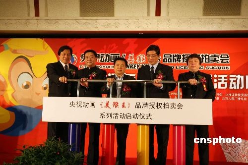 12月29日,《美猴王》品牌授權(quán)拍賣會(huì)啟動(dòng)儀式在北京舉行。該活動(dòng)是央視動(dòng)畫2009年動(dòng)漫主題營(yíng)銷活動(dòng)的開(kāi)篇之作。除此之外,另有15部動(dòng)畫精品,在國(guó)內(nèi)甚至國(guó)際行業(yè)內(nèi)首次以拍賣形式出售版權(quán),旨在搭建中國(guó)動(dòng)漫營(yíng)銷第一平臺(tái),締造新興動(dòng)漫產(chǎn)業(yè)模式。中新社發(fā) 任海霞 攝