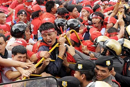 圖:泰國紅衫軍沖擊警方防線