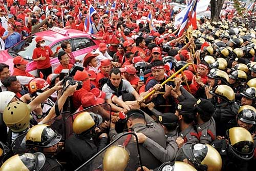 圖:泰國紅衫軍沖擊警方防線(2)