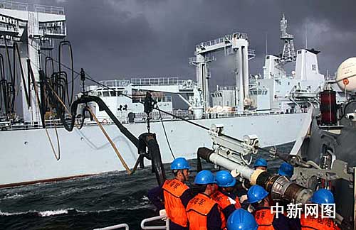 中新網(wǎng)“海口”艦馬六甲海峽十二月三十日電 (記者 孫自法)中國海軍赴亞丁灣、索馬里海域護航艦艇編隊,三十日下午在馬六甲海峽順利完成首次海上綜合補給。