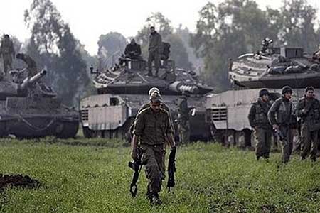 以色列士兵步行走過(guò)集結(jié)在加沙巴以邊界附近的裝甲群。