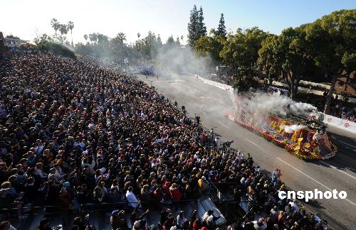 大游行吸引了來(lái)自全世界共46輛豪華花車、22個(gè)樂(lè)隊(duì)方陣和18個(gè)騎士方陣參加。帕薩迪納玫瑰花車大游行自1890年元旦舉辦以來(lái)已歷120屆,現(xiàn)已成為全美最主要的新年慶典活動(dòng)之一,與紐約時(shí)代廣場(chǎng)的跨年慶祝活動(dòng)齊名。中新社發(fā) 張煒 攝