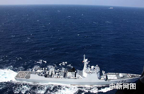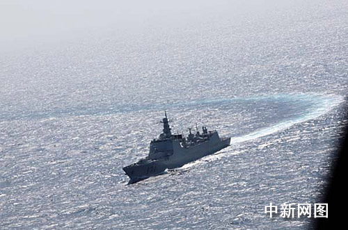 中新網(wǎng)“海口”艦1月2日電 (記者 孫自法)1月2日,中國海軍護航編隊航經(jīng)印度洋海域,圖為本網(wǎng)記者隨“?凇迸炁炤d直升機在空中拍攝“?凇碧枌(dǎo)彈驅(qū)逐艦馳騁于印度洋的雄姿。
