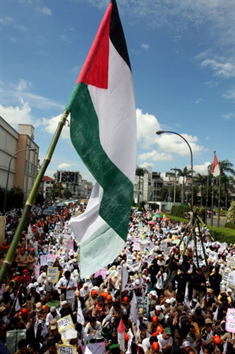 1月3日,印尼民眾舉行游行活動抗議以色列軍隊襲擊加沙地帶。