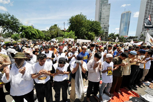 印尼民眾為加沙地帶死難者祈禱。