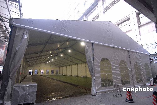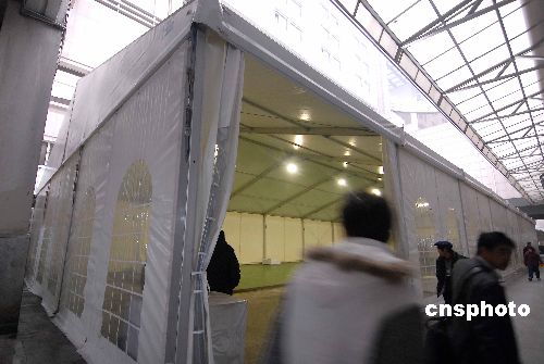 2009年1月5日,為迎接即將到來的春運(yùn),兩個(gè)高6.5米、占地面積達(dá)750平方米的臨時(shí)候車室出現(xiàn)在杭州火車站,這也是杭州站第一次在室外搭建候車室,杭州東站也將搭建近1500平方米的第三候車室。中新社發(fā) 引煒 攝