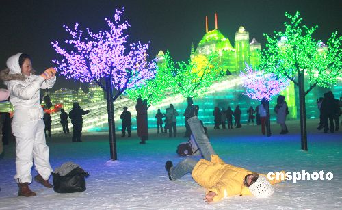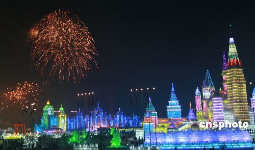 2009年1月5日,由國家旅游局、黑龍江省人民政府、哈爾濱市人民政府主辦的第25屆中國·哈爾濱國際冰雪節(jié)在哈爾濱舉行開幕式。本屆冰雪節(jié)以“激情大冬會(huì)、快樂冰雪游”為主題,包括冰雪藝術(shù)、冰雪體育、冰雪文化、冰雪經(jīng)貿(mào)、冰雪旅游等百余項(xiàng)相關(guān)活動(dòng)。中新社發(fā) 王忠言 攝