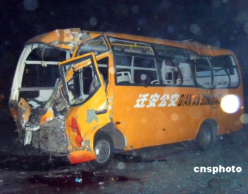 1月6日14時25分許,河北省遷安市發(fā)生一起重大交通事故。在遷安市祺光路與彭李路交叉口處,一名個體司機駕駛大貨車與遷安市公交公司13路公交車相撞,造成公交車兩名司乘人員當場死亡,在送往醫(yī)院途中死亡一人,經(jīng)搶救無效死亡三人,另四名傷者正在醫(yī)院救治。 中新社發(fā) 翟羽佳 攝