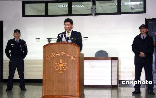 圖為臺灣高等法院發(fā)言人溫耀源在記者會上宣布裁定結(jié)果并解釋裁定書。中新社發(fā) 陳立宇 攝