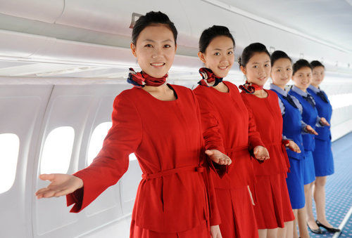 6名準空姐把自己在課堂上所學過的知識統(tǒng)統(tǒng)演示了一遍。