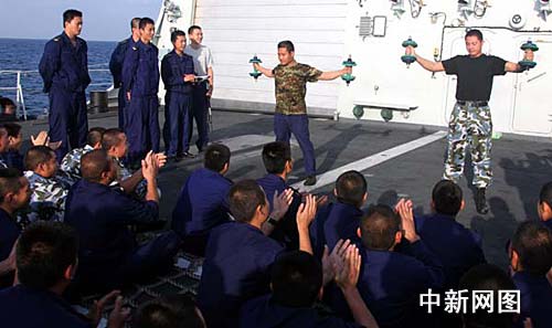 中新網(wǎng)“?凇迸1月9日電,中國海軍護(hù)航編隊(duì)“?凇碧(hào)導(dǎo)彈驅(qū)逐艦舉行甲板運(yùn)動(dòng)會(huì),以豐富官兵在護(hù)航期間的文體生活,甲板運(yùn)動(dòng)會(huì)共設(shè)六個(gè)比賽項(xiàng)目,分三個(gè)下午舉行,今天首場(chǎng)舉行啞鈴、臂力棒項(xiàng)目的比賽。