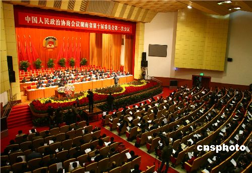 1月10日下午3時,政協(xié)湖南省第十屆委員會第二次會議在湖南省軍區(qū)禮堂隆重開幕。來自社會各界的政協(xié)委員、旁聽代表等共計700余人與會,將在為期5天的會議中為湖南發(fā)展建言獻(xiàn)策。中新社發(fā) 傅煜 攝