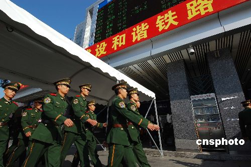 廣州火車站執(zhí)勤武警誓師。中新社發(fā) 柯小軍 攝