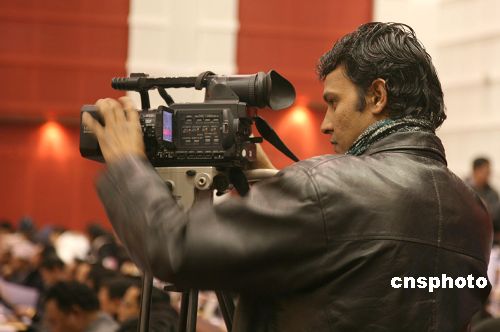 1月12日,西藏自治區(qū)政協(xié)九屆二次會(huì)議在拉薩開(kāi)幕。本次會(huì)議首次特邀印度、尼泊爾記者前來(lái)采訪(fǎng)報(bào)道。圖為印度記者在現(xiàn)場(chǎng)進(jìn)行采訪(fǎng)報(bào)道。中新社發(fā) 賈長(zhǎng)飛 攝