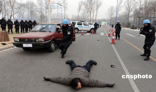 維和防暴隊員進行定點查車訓練。中新社發(fā) 由永懷 攝