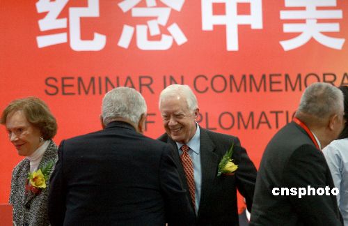 1月12日,紀念中美建交30周年研討會在北京開幕。中國前副總理錢其琛、美國前總統(tǒng)卡特、美國前國務卿基辛格等在開幕式上致辭。研討會會期兩天,以紀念中美建交30周年為主題,就中美關(guān)系30年發(fā)展的主要經(jīng)驗及對世界的意義、中美關(guān)系未來展望及對發(fā)展兩國關(guān)系的建議等議題進行研討。 中新社發(fā) 鄭雄增 攝