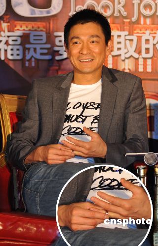 1月13日,由華誼兄弟出品、劉偉強(qiáng)執(zhí)導(dǎo)的浪漫愛情大片《游龍戲鳳》舉行官網(wǎng)啟動儀式。劉德華出席活動時(shí)左手無名指驚現(xiàn)環(huán)形戒指,他在接受訪問時(shí)還不停的玩撫戒指,多次摘掉又戴上。中新社發(fā) 李學(xué)仕 攝