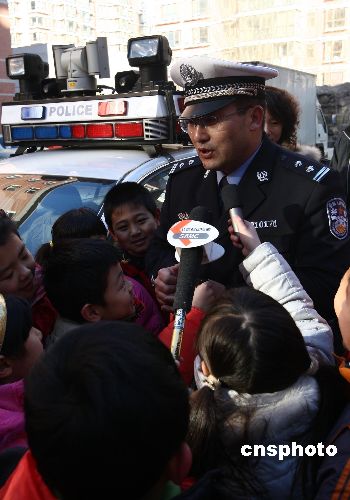 1月14日,北京崇文區(qū)交通支隊民警為崇文小學(xué)學(xué)生和家長講授交通安全課。中新社發(fā) 杜洋 攝