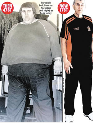 英國超級胖司機為保命減肥380斤:英國59歲的貨車司機彼得卡羅爾體重達到298公斤。肥胖給他的身體帶來了眾多疾病,醫(yī)生向他發(fā)出警告,稱如果再不減肥就應該開始為自己準備葬禮。為了拯救性命,彼得接受了胃旁路減肥手術,接著他到健身館進行鍛煉,最后竟成功減掉了190公斤體重。