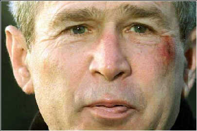 2002年1月,布什由于吞下一塊脆餅干導(dǎo)致短暫的心率放緩而昏倒。頭撞到地板上,造成左顴骨擦傷,下嘴唇也有一處挫傷。