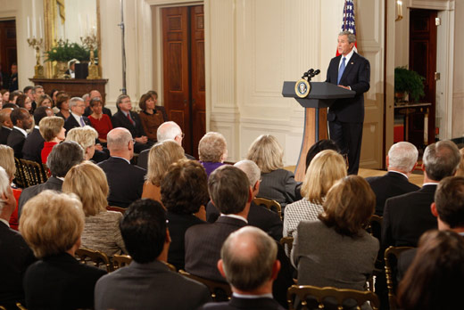 美國總統(tǒng)布什于當(dāng)?shù)貢r間15日晚上8時(北京時間16日9時)在白宮向全國發(fā)表電視告別演說。