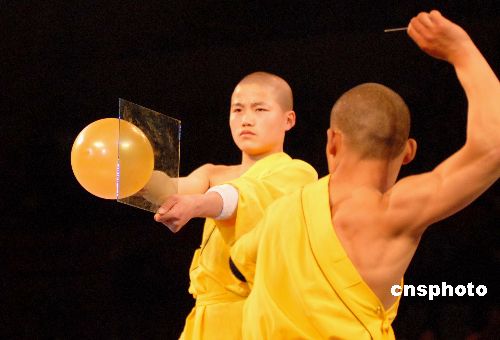 少林功夫之針穿玻璃。中新社發(fā) 楊洋 攝