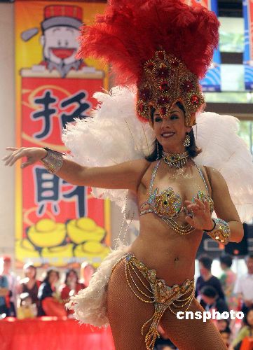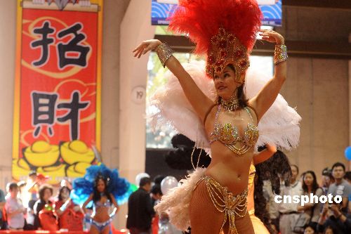 桑巴熱舞為洛杉磯華人“廟會(huì)”助興。中新社發(fā) 張煒 攝