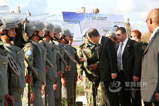 在秘書長視察維和部隊4個小時的緊張行程中,中國掃雷官兵是秘書長此行單獨接見的唯一一支任務分隊,中國營長是唯一一個被單獨接見的維和分隊指揮官。