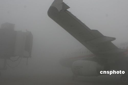 繼1月18日成都雙流國際機場遭受近年來最為嚴重的一場濃霧天氣襲擊后,19日,一場更為嚴重的濃霧再次襲擊雙流機場。這場濃霧發(fā)生在早上5:30左右,當時能見度僅有10米左右,機場被迫關閉。中新社發(fā) 呂俊明 攝