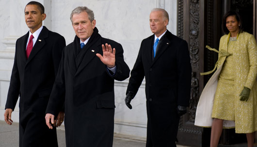 中新網1月21日電 美國當?shù)貢r間1月20日,美國第44任總統(tǒng)就職典禮結束后,新任總統(tǒng)奧巴馬送前任總統(tǒng)布什離開國會山。按照事先的安排,布什離開居住了8年的白宮后,從華盛頓郊外的安德魯斯空軍基地乘坐專機直飛家鄉(xiāng)得克薩斯州米德蘭,參加當?shù)厝藶樗e辦的“歡迎回家”大型集會。隨后,布什將前往自家的克勞福德農場,在那里度過作為前總統(tǒng)的第一晚。