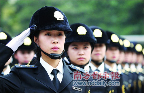 騎士頭盔、靴子、緊身衣,22名女隊員身著新制服集結宣誓,開電瓶車上路巡街,沿途引起市民驚艷注目。昨日(2009年1月20日)上午,佛山首支城管執(zhí)法女子特勤中隊掛牌上路,佛山欲借此提升打造城管品牌形象。