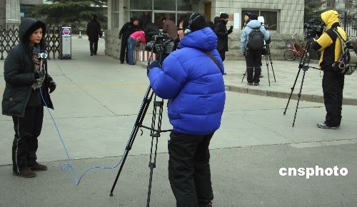 圖為當(dāng)日上午9時(shí)左右,石家莊中級(jí)法院門口來(lái)自香港的幾家媒體早已“開(kāi)工”。中新社發(fā) 翟羽佳 攝