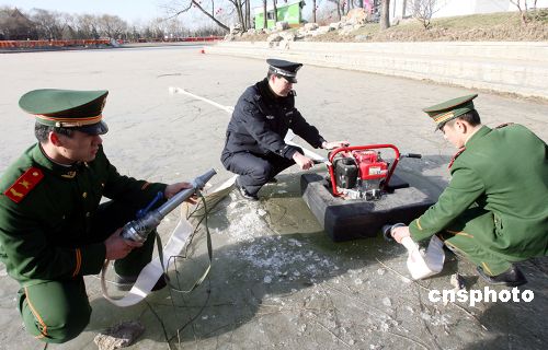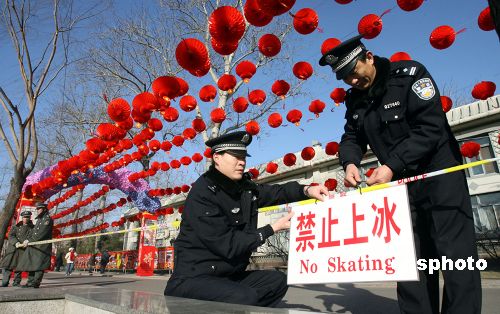 1月22日,北京崇文警方會同相關部門對龍?zhí)逗䦶R會的各項公眾措施進行最后檢查,以確保游人的絕對安全。中新社發(fā) 胡建強 攝