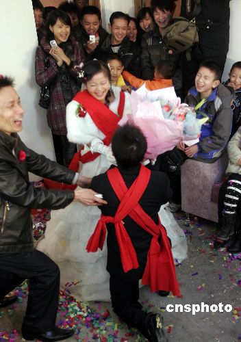 圖:新年到 四川災(zāi)區(qū)村民蓋起新房娶新娘(3)