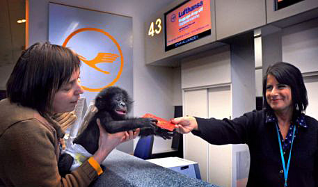 中新網(wǎng)1月23日電 據(jù)英國媒體報道,一只小猩猩攜帶自己的“護(hù)照”從英國伯明翰機(jī)場出發(fā)前往德國法蘭克福,并在那里的一個動物園安家落戶。這本“護(hù)照”其實(shí)是它的進(jìn)出口證明文件。