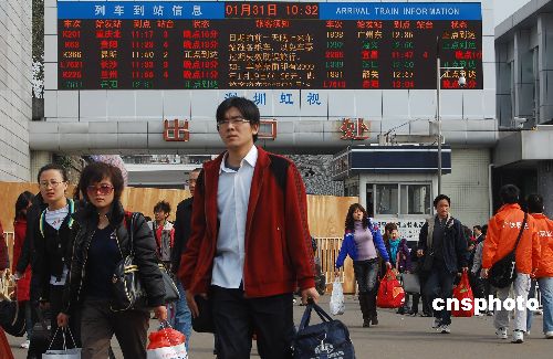 隨著春節(jié)長假臨近結(jié)束,廣州火車站出站口人流開始明顯增多,外來工和大學(xué)生畢業(yè)生紛紛提前返粵找工。中新社發(fā) 柯小軍 攝