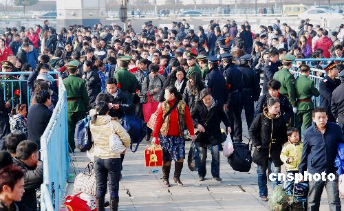 2009年1月31日,旅客們正在南昌鐵路局九江火車站準(zhǔn)備上車。隨著春節(jié)長(zhǎng)假接近尾聲,南昌鐵路局客流大幅增長(zhǎng)。1月31日,該局發(fā)送旅客42.6萬(wàn)人,同比增長(zhǎng)18.79%。為應(yīng)對(duì)節(jié)后客流高峰,南昌鐵路局開行臨客73列,臨客開行列數(shù)為2009年春運(yùn)以來(lái)最高值。