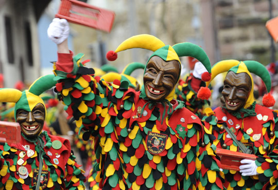 2月1日,德國(guó)南部城市弗萊堡舉行第75屆嘉年華會(huì),狂歡者身著盛裝,帶著怪異的面具在街道上游行。