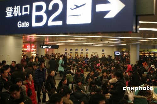 2月2日,牛年春節(jié)后首場(chǎng)濃霧籠罩川西大地。成都雙流國(guó)際機(jī)場(chǎng)受濃霧襲擊發(fā)布了三級(jí)預(yù)警信號(hào),機(jī)場(chǎng)關(guān)閉達(dá)四個(gè)多小時(shí),直接造成一百二十一個(gè)進(jìn)出港航班延誤,并導(dǎo)致十個(gè)進(jìn)出港航班取消,來自新加坡、浦東的個(gè)別進(jìn)港航班分別備降昆明、重慶,同時(shí)致使近一點(diǎn)三萬名旅客受阻于機(jī)場(chǎng)。中新社發(fā) 呂俊明 攝
