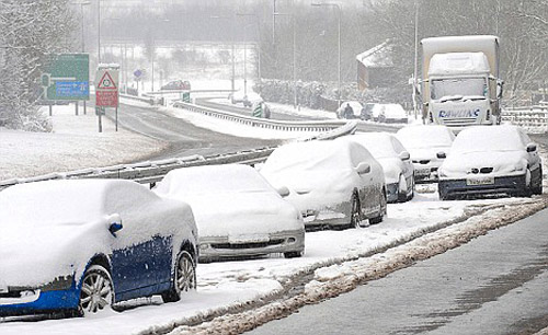 大雪導(dǎo)致公路交通嚴(yán)重癱瘓。20年來最大的暴風(fēng)雪日前襲擊了英國的英格蘭和威爾士等地。