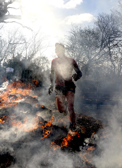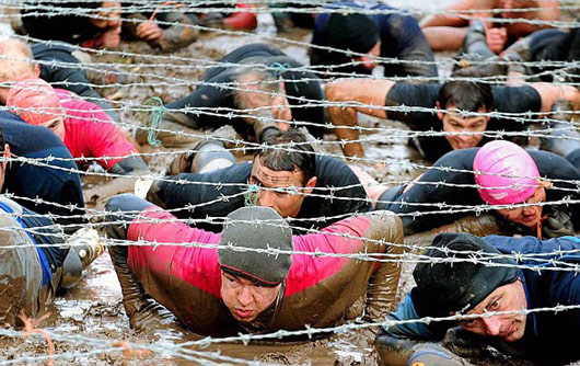 硬漢大賽:一年一度的英國硬漢挑戰(zhàn)大賽在英格蘭中部的伍爾弗漢普頓市舉行,共有接近3000名選手參加這項被譽(yù)為叢林戰(zhàn)士的賽事。參賽者需要在火焰中奔跑,穿越齊腰深的沼澤地,在帶刀片的鐵絲網(wǎng)下爬行,躍入冰冷的湖中……