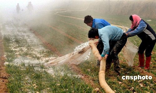 河南洛陽自2008年10月下旬以來,沒下過一場“透雨”,降水量較常年同期減少近八成,全市農(nóng)作物受旱面積達(dá)260萬畝,其中有30萬畝麥苗枯黃。13座大中型水庫蓄水量不足常年的一半。7.3萬人飲水嚴(yán)重困難,1.1萬人靠送水解決飲水問題。全市先后投入抗旱資金2500余萬元,抓緊抗旱。
