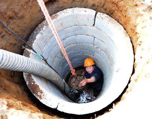 汝陽縣柏樹鄉(xiāng)群眾正在打井,準(zhǔn)備抽水抗旱。中新社發(fā) 高山岳 攝