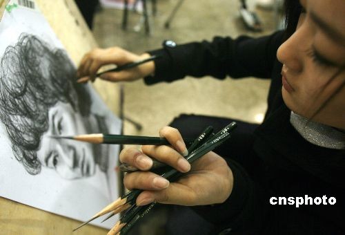 2月5日上午8點(diǎn)整,山東省2009年藝術(shù)類考生藝術(shù)專業(yè)考試正式拉開帷幕。山東工藝美術(shù)學(xué)院由于考生人數(shù)眾多,將考場(chǎng)搬進(jìn)了20000余平方米的濟(jì)南市舜耕會(huì)展中心,讓近7000多名美術(shù)類專業(yè)考生在展廳內(nèi)同時(shí)參加考試,一展身手。