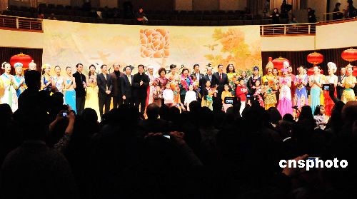 由國務院僑辦主任李海峰率領(lǐng)的“文化中國·四海同春”藝術(shù)團,當?shù)貢r間2月4日晚在華盛頓成功演出,當?shù)厝A僑華人千余名觀眾演出結(jié)束后簇擁舞臺久久不肯散去。國僑辦主任李海峰、中國駐美大使周文重夫婦走上舞臺和演員們合影。