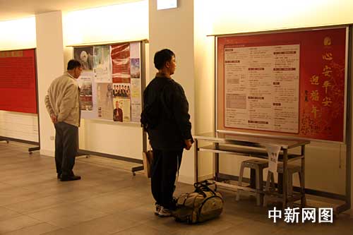 臺(tái)灣法鼓山創(chuàng)辦人圣嚴(yán)法師三日圓寂,四日移靈金山法鼓山世界佛教教育園區(qū)大殿供信眾瞻仰,圖為五日晚一名信眾在瞻仰圣嚴(yán)法師法相后,正觀看圣嚴(yán)法師今年春節(jié)的最后祝!靶陌财桨灿D辍。 中新社記者:陳立宇 攝