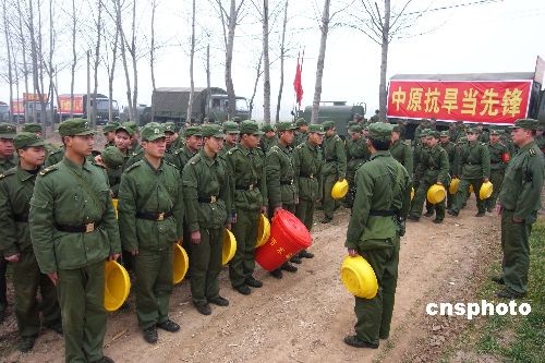 2月6日,駐河南許昌某部隊(duì)出動(dòng)官兵1000余人,組成數(shù)支抗旱突擊隊(duì),趕到災(zāi)情最為嚴(yán)重的許昌市許昌縣蔣李集鎮(zhèn)、河街鄉(xiāng)一帶抗旱救災(zāi),力爭把災(zāi)害降到最低程度。