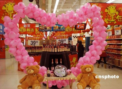 2月11日,情人節(jié)臨近,天津商場(chǎng)節(jié)日氣氛漸濃,各大商家也開(kāi)始精心布置門面,迎接“情人節(jié)”購(gòu)物季的到來(lái),一場(chǎng)“情人節(jié)”商戰(zhàn)正在悄然打響。中新社發(fā) 金立冬 攝